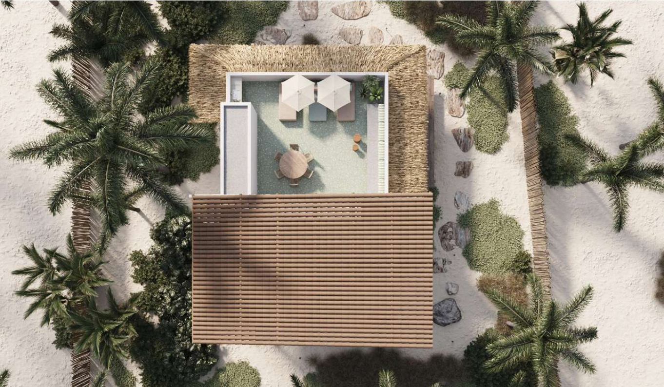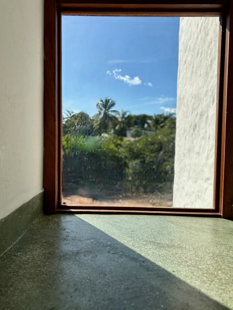 Das architektonische Hauptmerkmal des Hauses ist die Verschmelzung von Innen und Außen. Die Vegetation wird durch große Türen und Fenster gerahmt und in das Raumerlebnis einbezogen, so dass die Grenzen zwischen Innenraum und Natur zu verschwimmen scheinen. Dazu tragen auch die verwendeten Materialien bei. Die Dacheindeckung besteht aus Piassava, den Fasern der einheimischen Strickpalme. Die Holzelemente und der grüne Industrieboden fügen sich farblich in die Umgebung ein, ohne auf Raffinesse und Langlebigkeit zu verzichten.