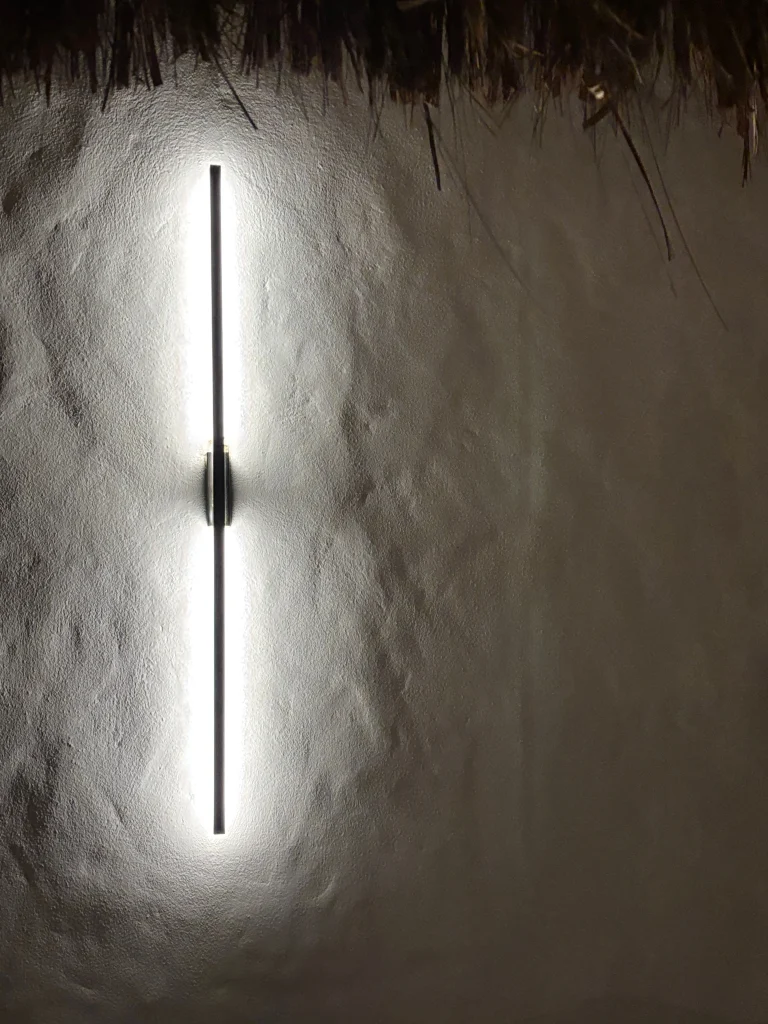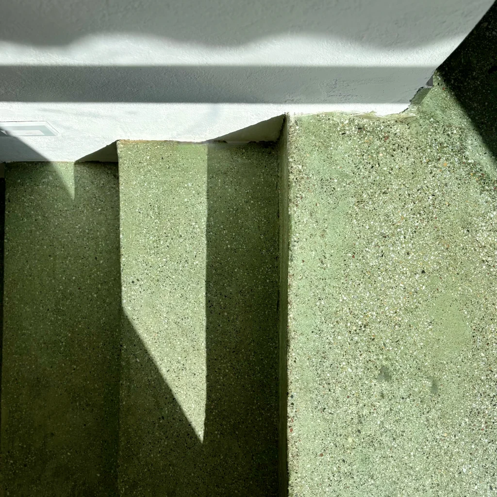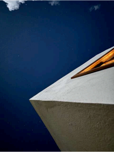 Ein weiteres besonderes Element ist eine handgefertigte, strukturierte Zementmauer, deren Aussehen sich im Laufe des Tages durch das Spiel des Lichts ständig verändert.